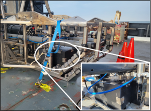 Figure 2: CHANOS II mounted on the HabCam vehicle for towed deployment on the HabCam Summer 2024 cruise.
